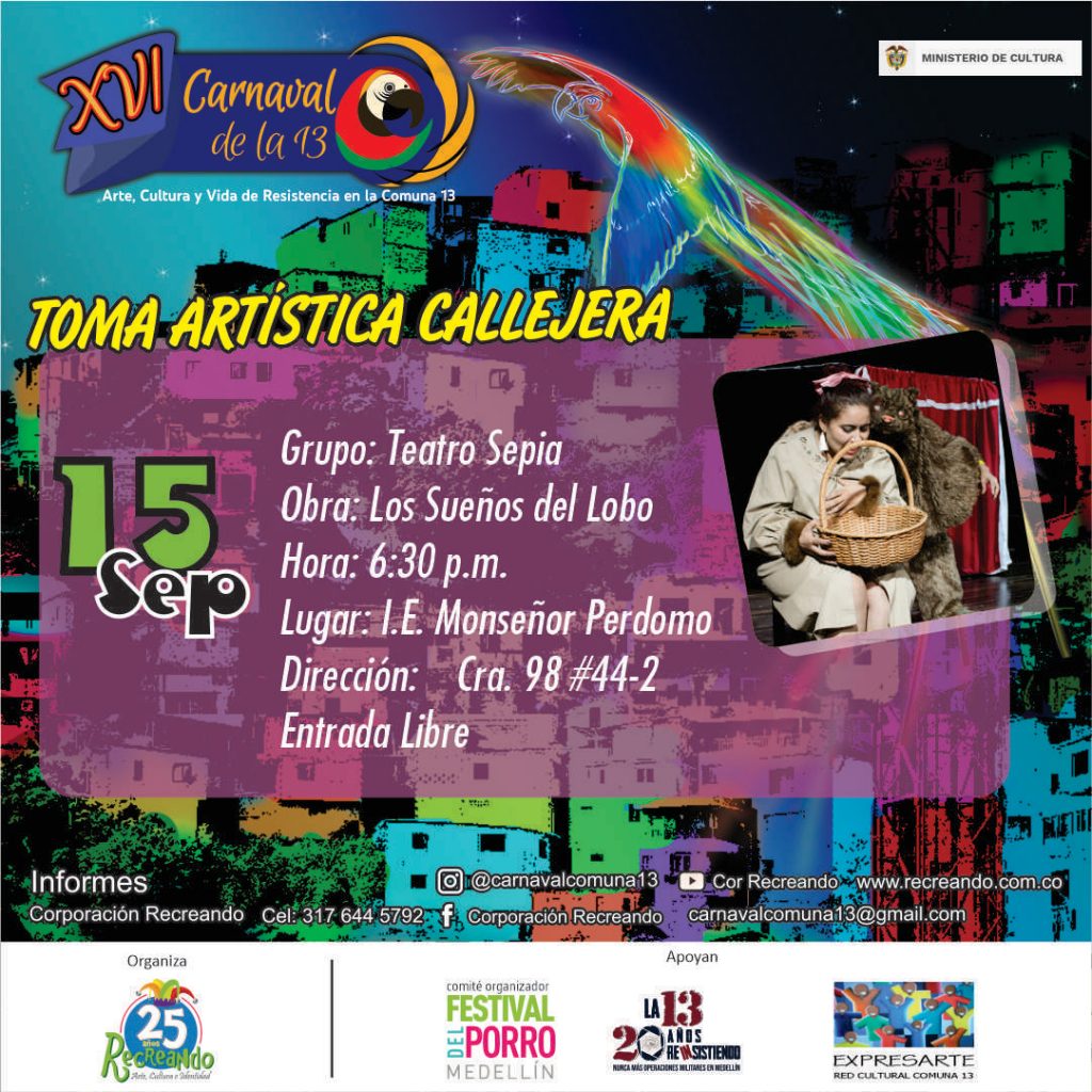 Toma Artística 15 septiembre tomas artísticas callejeras, teatro Sepia en el marco del XVI Carnaval de la 13, evento concertado con el Ministerio de Cultura