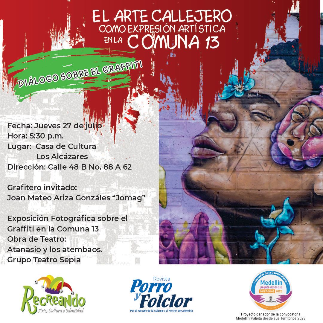 En la Comuna 13, a partir de la carencia de espacios para la creación, la difusión y la proyección del arte; la calle, el espacio público, el muro y la plaza pública, sean convertido en escenarios para la expresión y la intervención de artistas y graffiteros que expresen sus creaciones artísticas. Dos artistas nos muestran su trabajo creativo que hacen a través de la imagen y el color, transformando los territorios con sus creaciones, ellos son: Jomag y La Crespa.