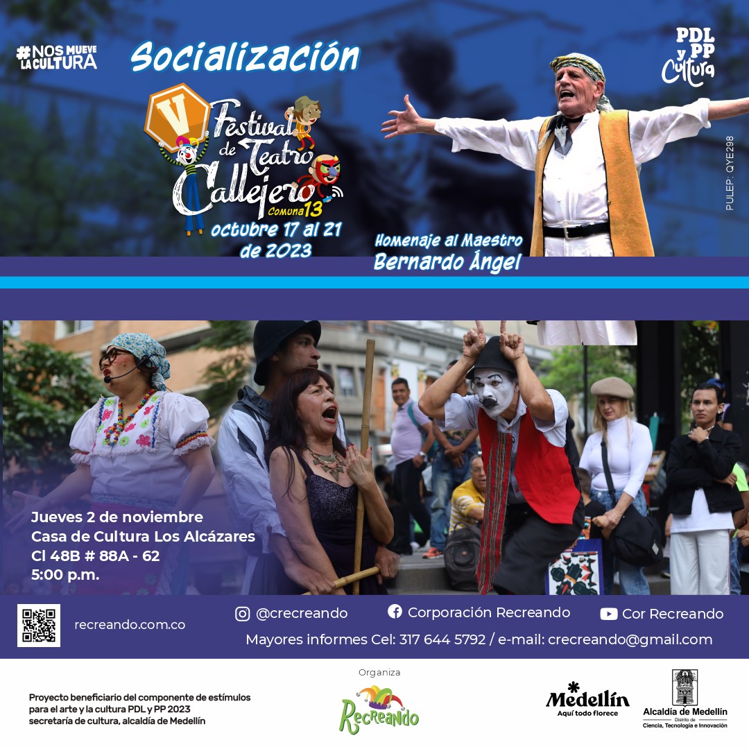 Socialización de Resultados V Festival de teatro Socialización de los resultados del V Festival de Teatro Callejero Comuna 13, Homenaje al maestro Bernardo Ángel, La Barca de Los Locos. Evento ganador del Estímulo de Presupuesto Participativo de la Comuna 13.