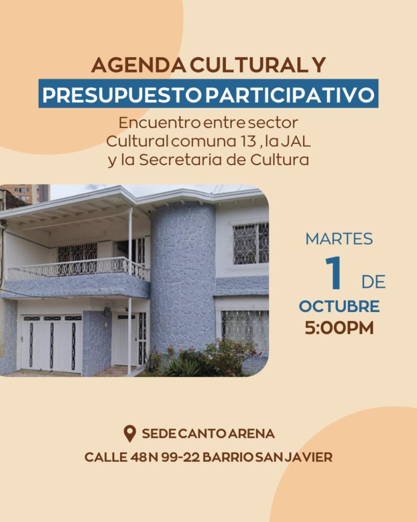 Agenda Presupuesto Participativo AGENDA CULTURAL PRESUPUESTO PARTICIPATIVO Encuentro entre sector Cultural comuna 13, la JAL y la Secretaria de Cultura