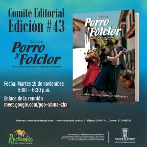 Te invitamos al Comitè Editorial de la Revista Porro y Folclor, para seleccionar los artículos para la edición No. 43. Te puedes unir al siguiente enlace: