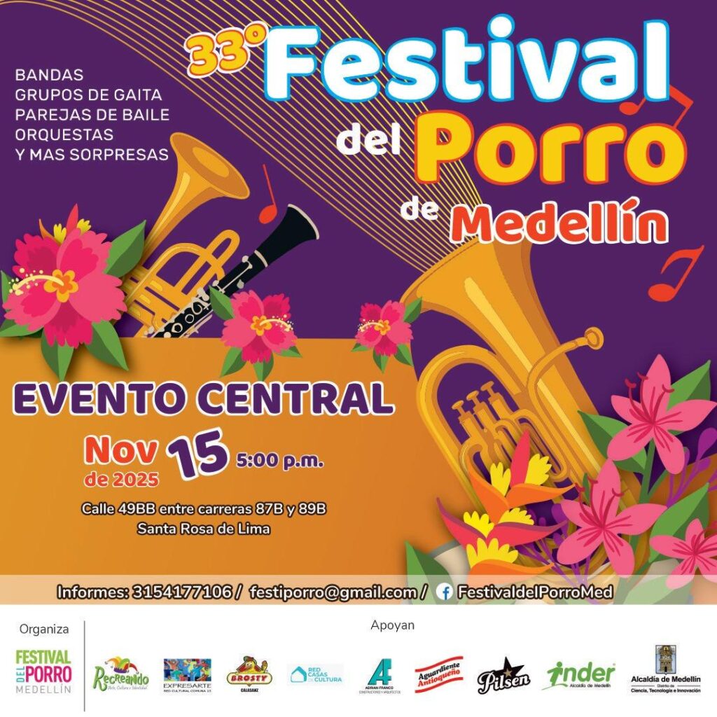 Evento central del festival del porro de Medellín. Evento central del 33 festival del porro de Medellín, Bandas, grupos de gaita, orquestas y más sorpresas Conoce aquí toda la programación Programación
