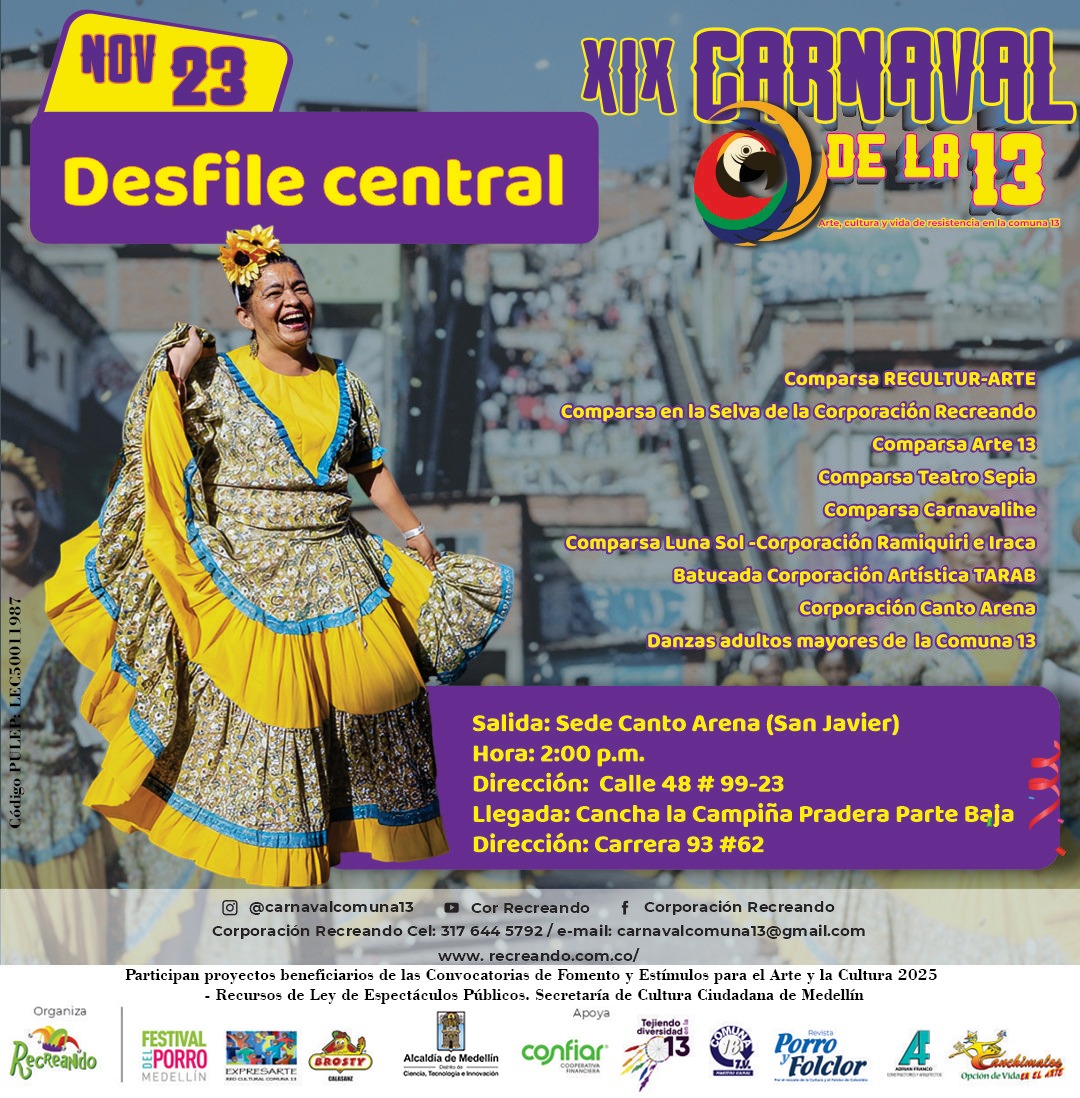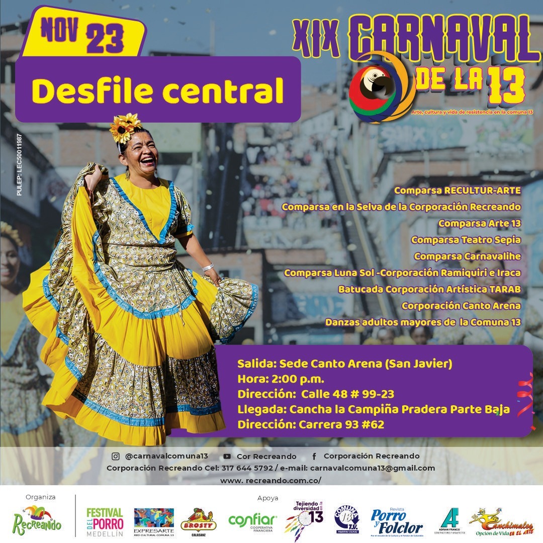 El 23 de noviembre tendremos el desfile central del XIX Carnaval de la 13